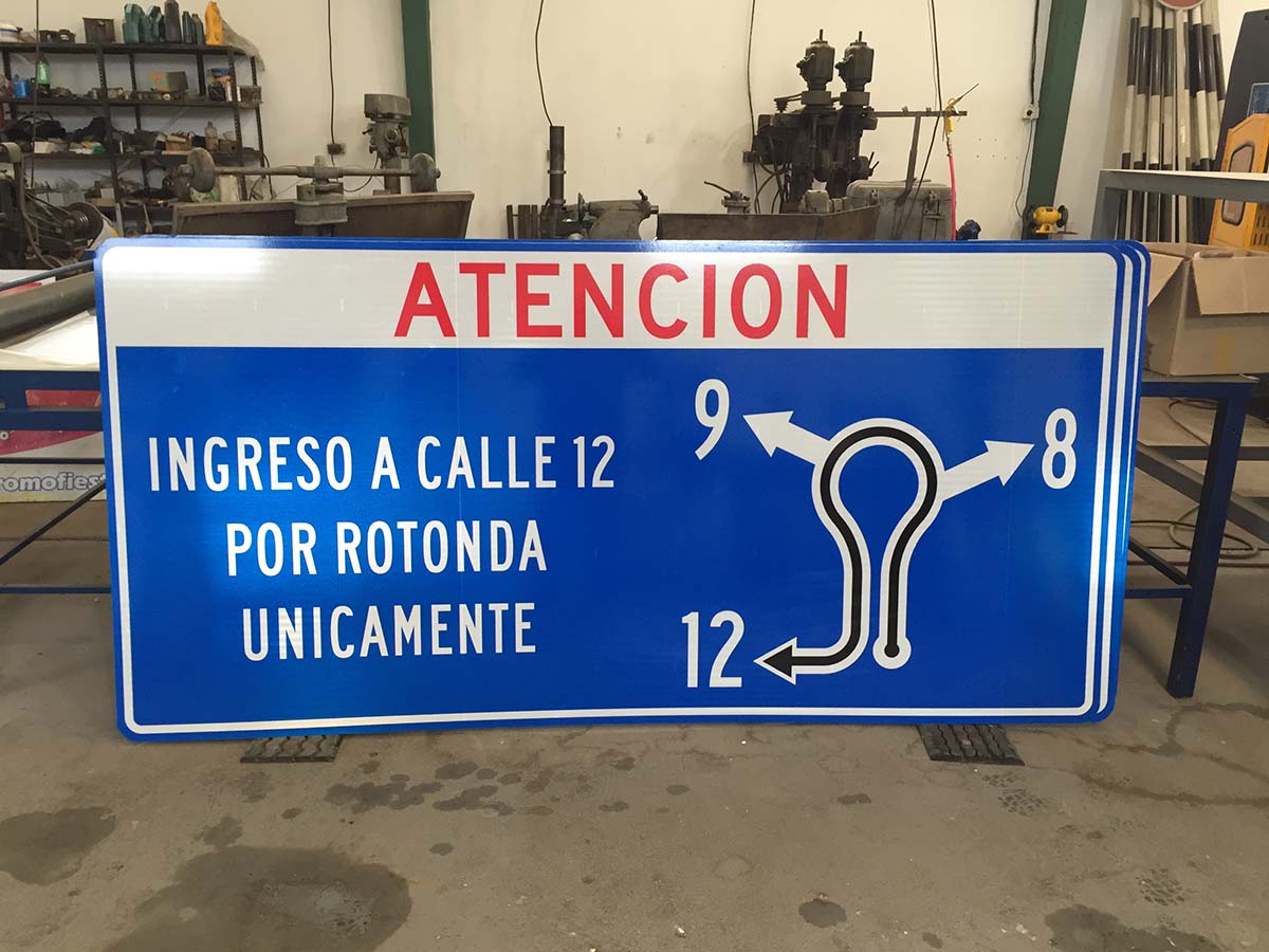 • Señalización vertical y aérea: banderolas, carteles de aproximación y velocidades máximas. Fabricación y montaje de los mismos sobre Av. Cantilo y Lugones (CABA).